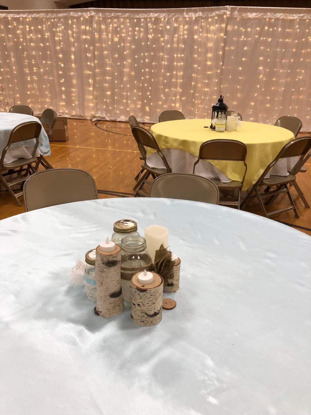 Set of 3 (with battery operated candles) birch candle holders various sizes. (8 sets available)