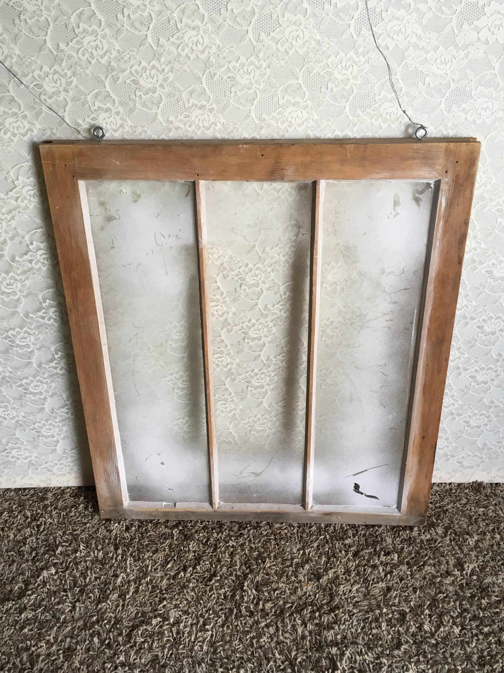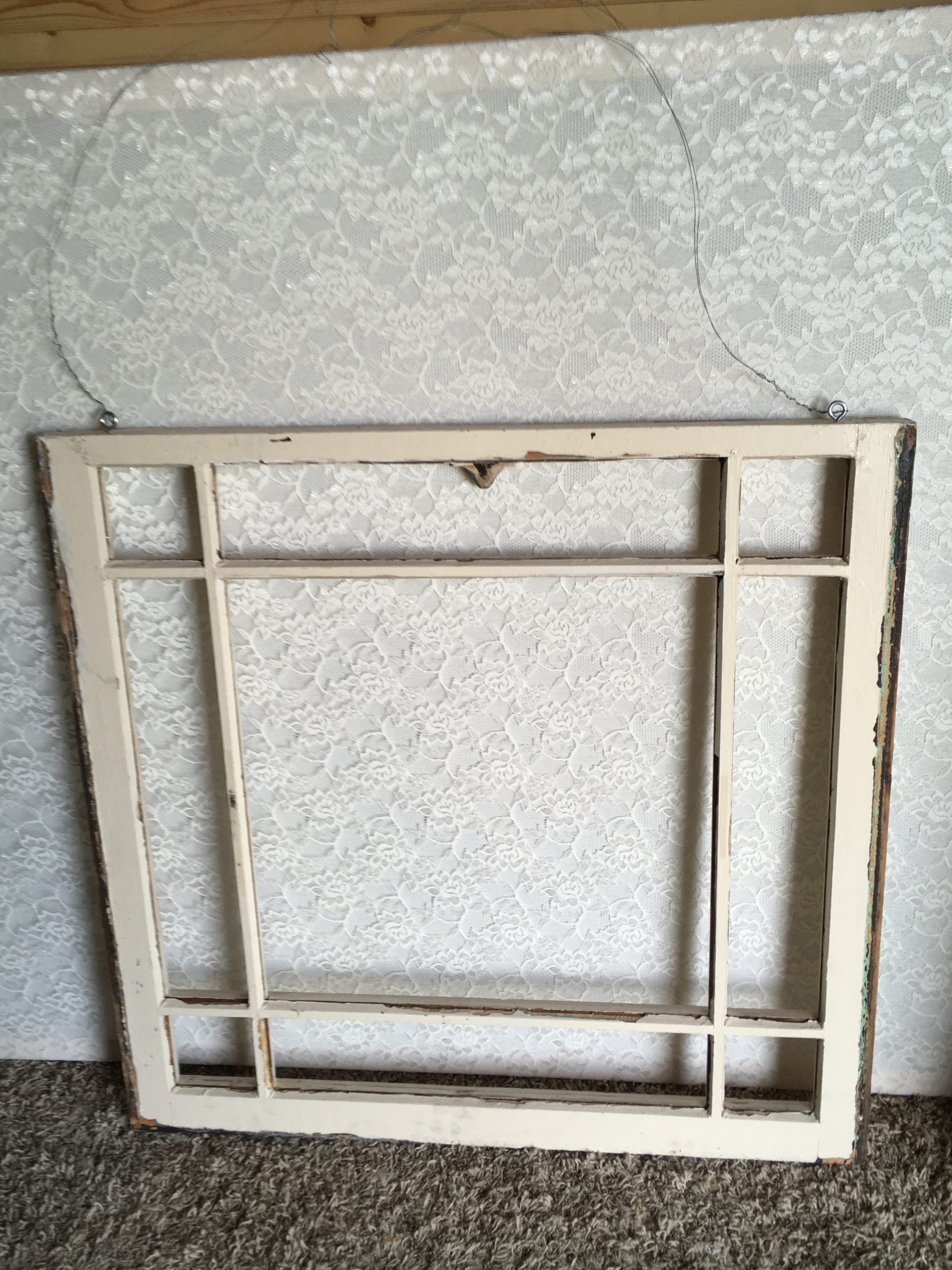 - hanging wire, 32" x 31.5" no glass 9 pane