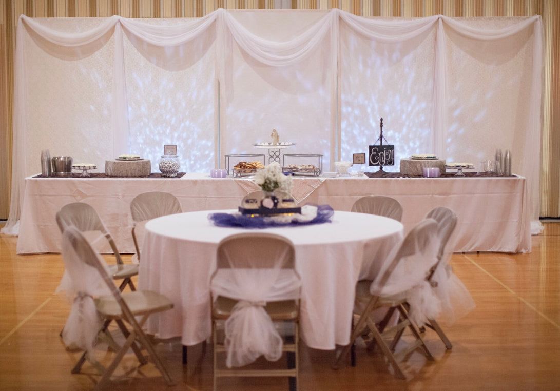 These cream panels are great for creating pretty backgrounds and adding elegance & beauty to otherwise plain venues, or walling off a large room. These 4ft. x8 ft. self-standing screens come in three patterns choose from: 4 lace, 4 stripe, and 2 brocade patterns.