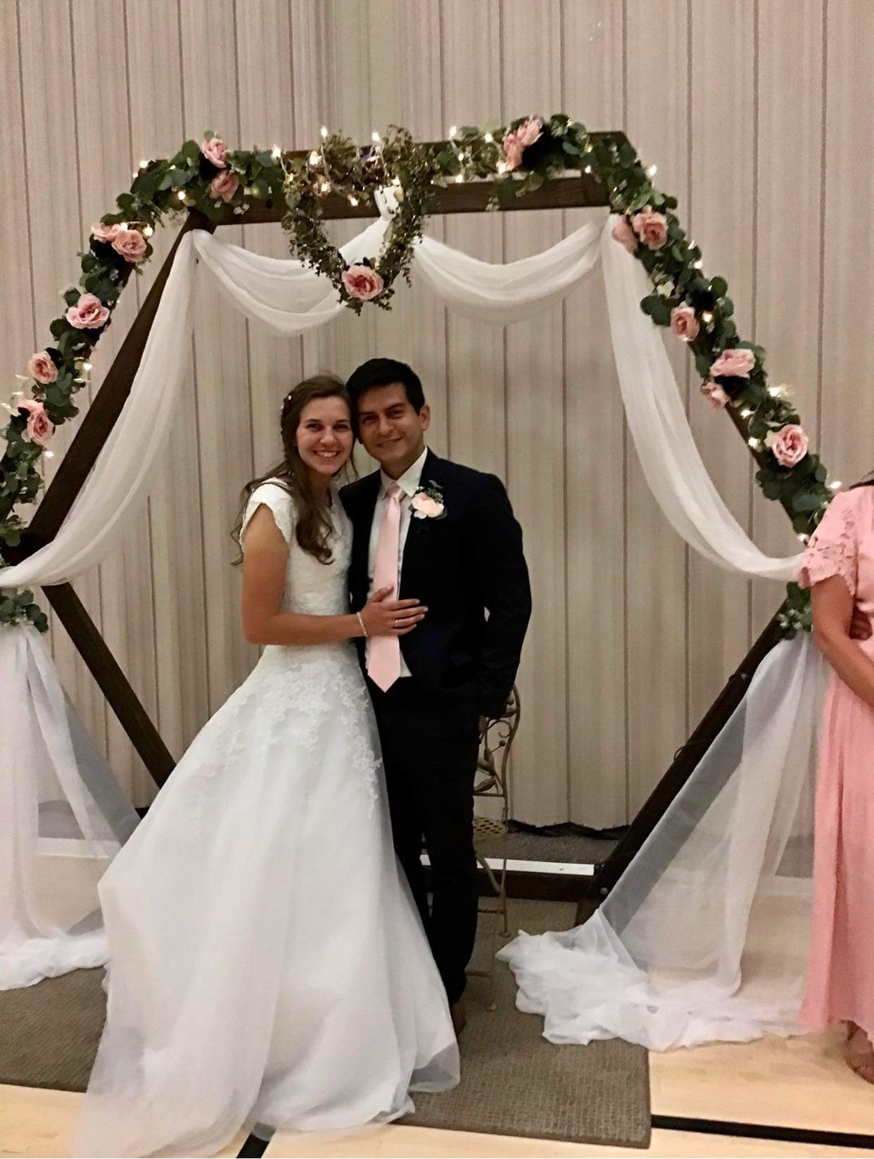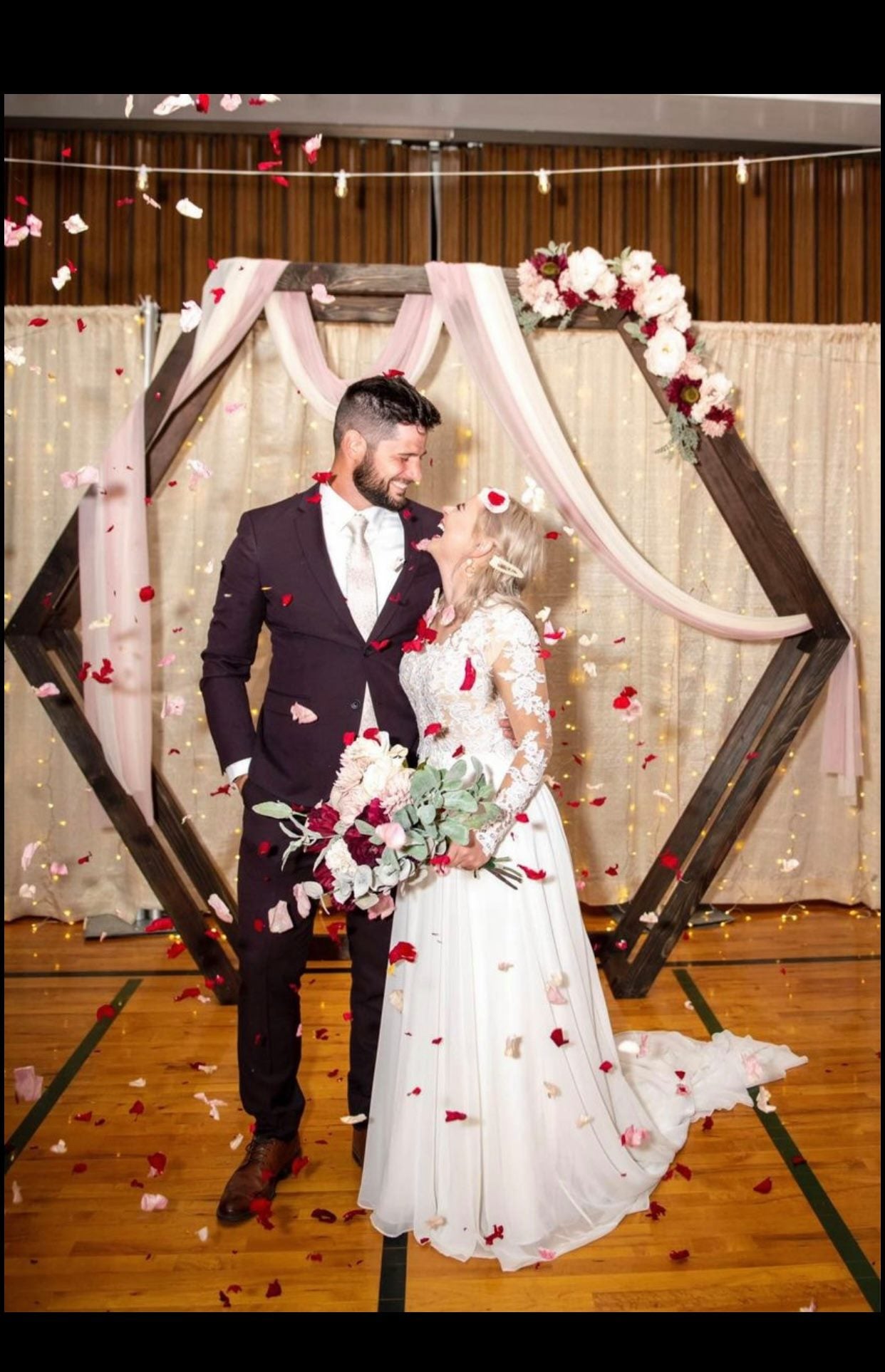 This is a stunning & popular style of double hexagon wedding arch. It is simple to set up and versatile to decorate just the way you want it. 7 foot 10 inches tall, 8 foot wide, top & base piece 4 foot 8 inches.