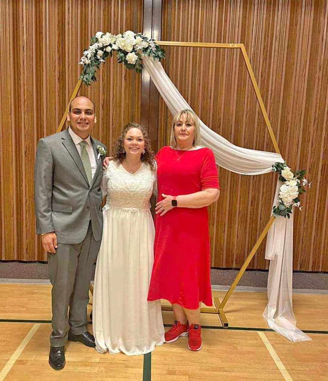 This Gold Hexagon Arch is a lovely focal point. You can adorn it with greenery, floral garland, drapery or leave it simple. This is an elegant backdrop perfect for your special occasion.