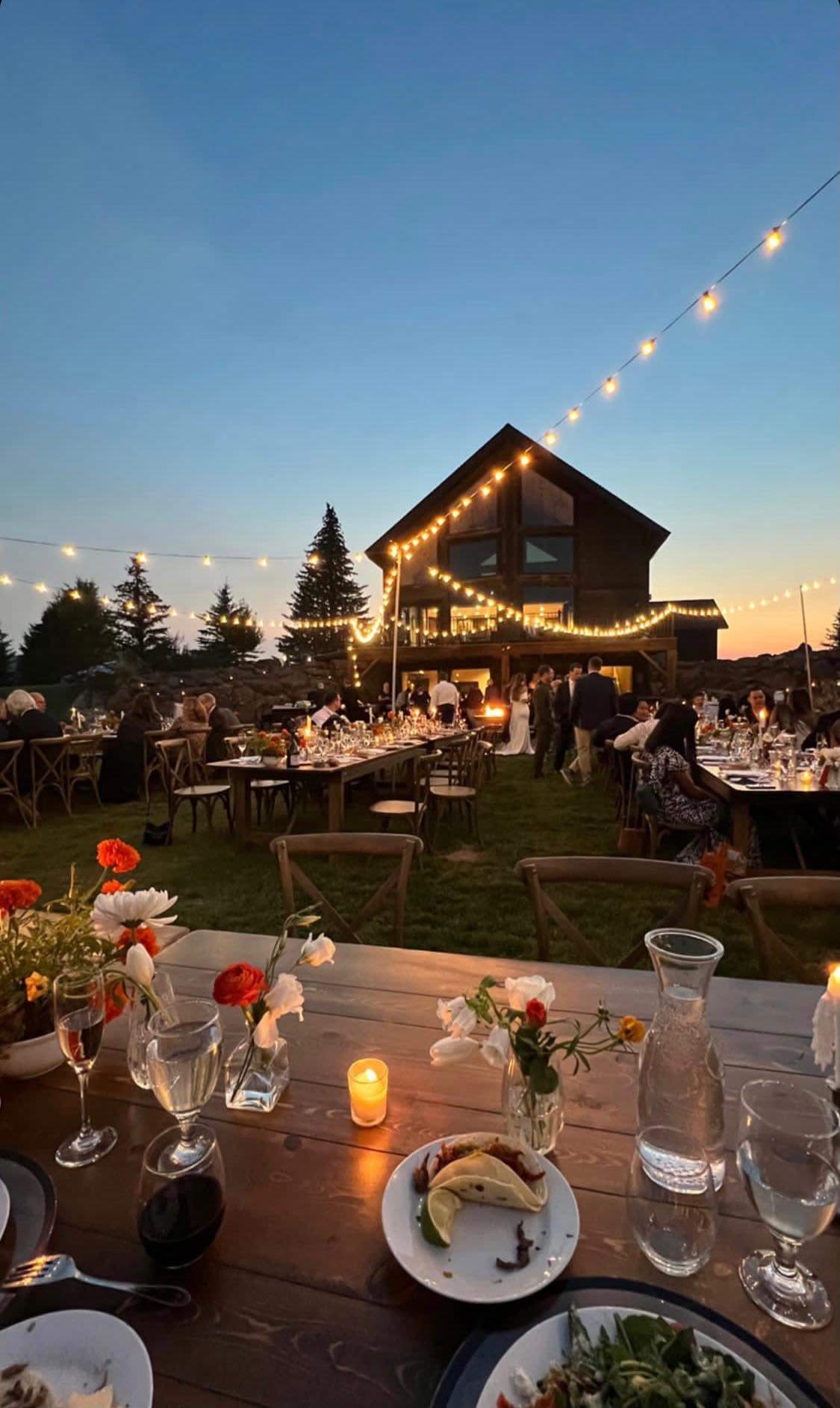 3/4” rebar are sunk into the ground and 1” conduit are placed over top to hang lights (not included) for more outdoor lighting. We use zipties to attach the light strands to the poles (not included in rental).