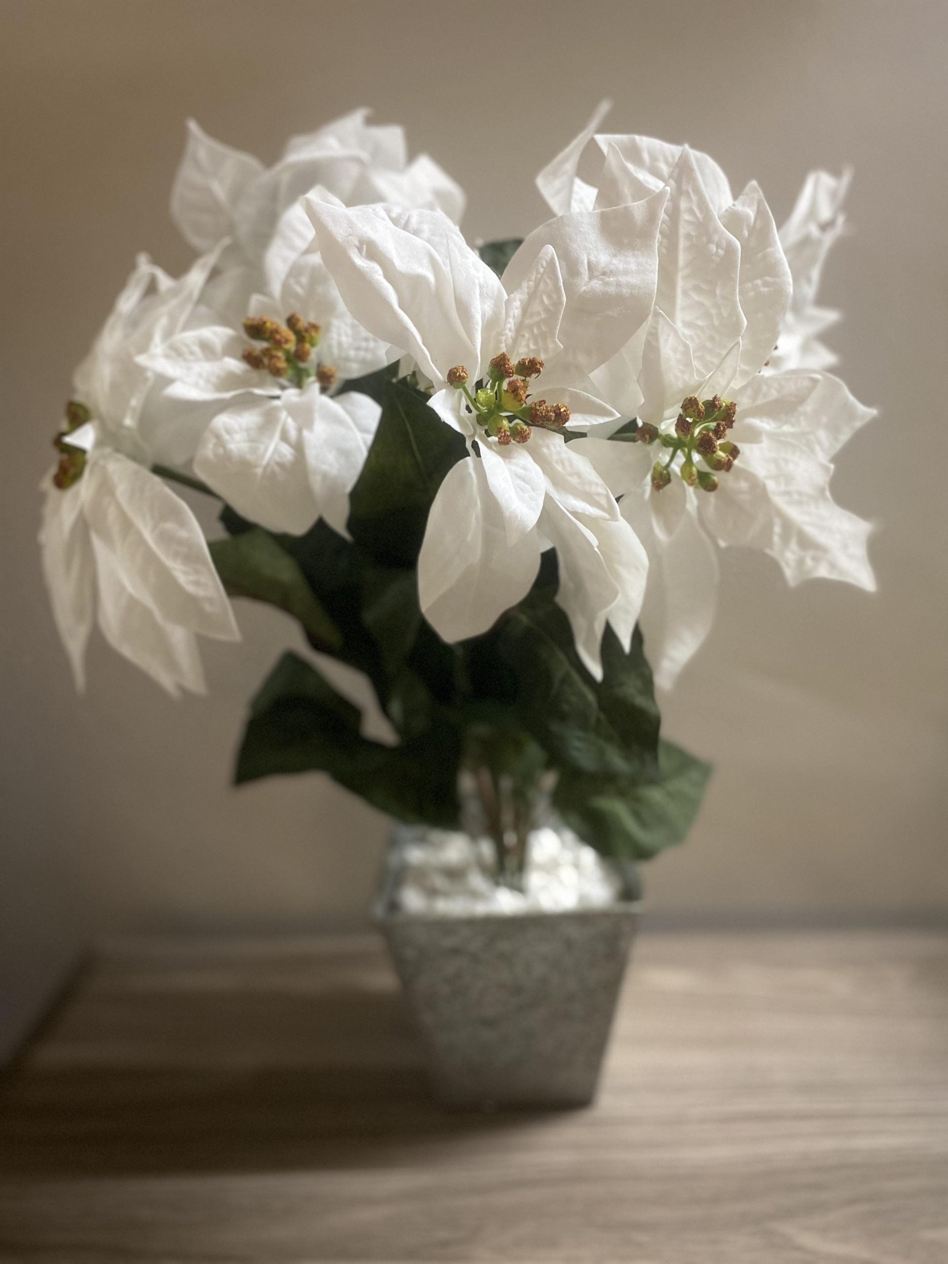 5” base X 20” tall (2 white available, 6 red & cream verigated available)
