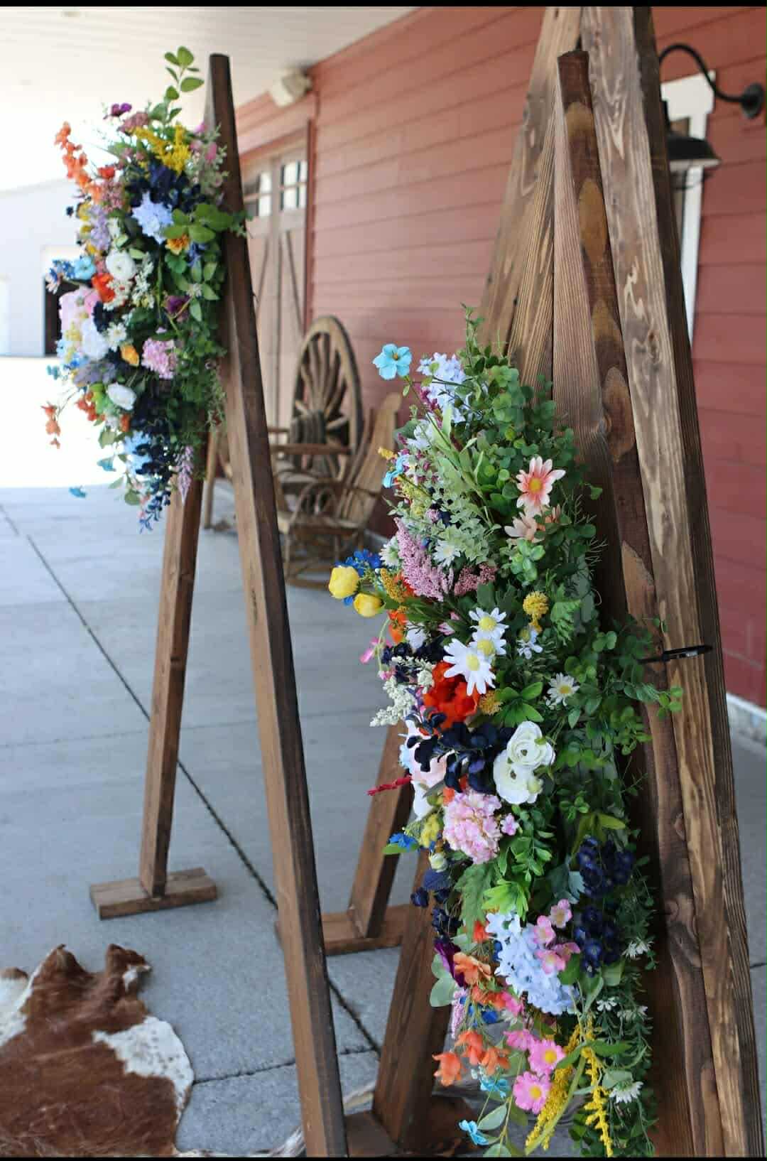 Make your ceremony or reception special with our Triple Triangle Arches! This hinged backdrop stand consists of three wood triangle arches with a smooth finish and beautiful stain color. Style it your way for the big day!