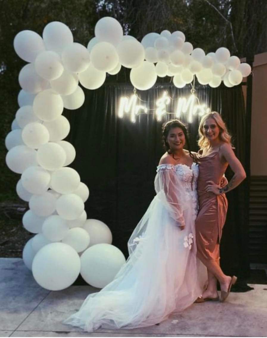 This backdrop has so many fun possibilities. It is classic as it has a more formal feel, but in a fresh, modern way. It has three cross-bars. Two bars has a shiny, sheet crinkly material between them & the other cross bar sits about 6” above to easily decorate & make a one-of-a-kind backdrop for your special occasion.